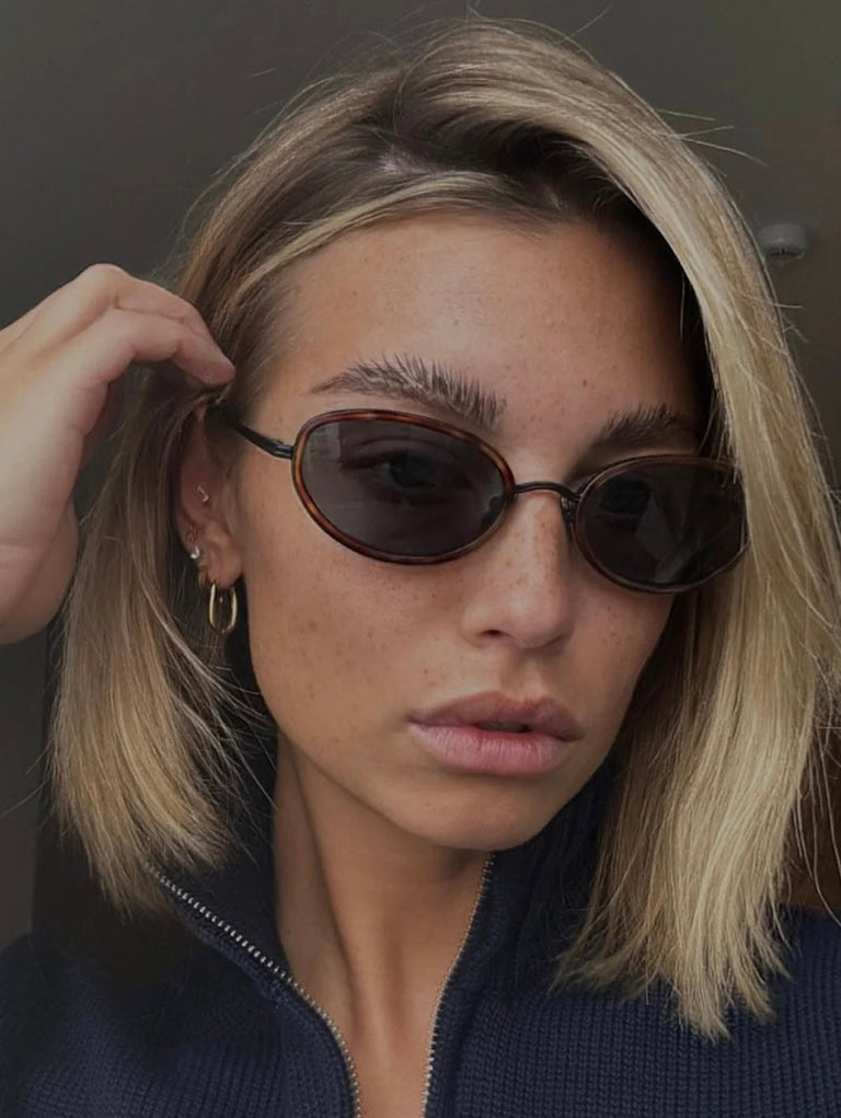June modeli ; Zarif, kaplumbağa kabuğu desenli oval çerçevesi ve duman rengi camlarıyla, her stile uyum sağlayan klasik bir tasarım.