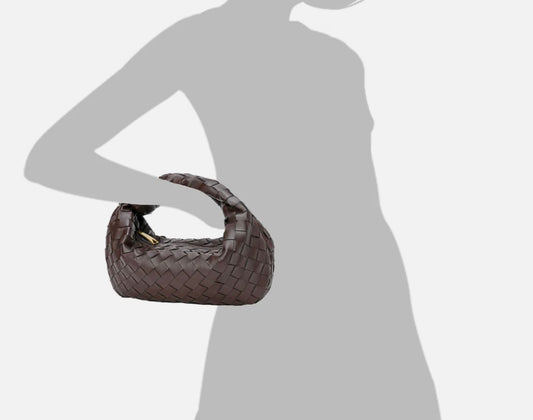 Woven Leather top handle Shoulder bag/KOYU KAHVERENGİ