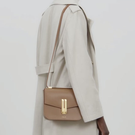 The Vancouver is ethically handcrafted from sustainable materials. It presents a sleek, structured design that marries the strength of the arrow-inspired double-bar lock with soft round edges. This versatile bag features an adjustable strap and can be worn crossbody or over the shoulder. Inside, there are two compartments in a soft cotton lining and a zipped pocket for smaller essentials. The Vancouver combines vintage sensibilities with a contemporary aesthetic.