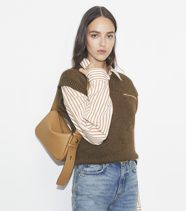 Günlük kullanıma uygun, en şık çanta. Heykelsi, yumuşak ve hareket halindeyken rahat olan Küçük Romy Omuz Çantası, zengin pürüzlü deriden üretilmiştir. Hafiftir ve derin fermuarlı cebiyle geniş bir iç mekana sahiptir. Geniş omuz askısı, yeni düğme logomuzla ayarlanabilir.